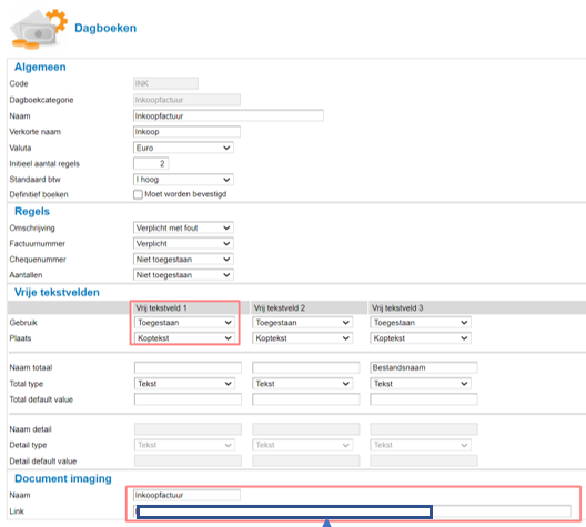 Indien u werkt met Twinfield dient u op het dagboek de volgende settings aan te passen.