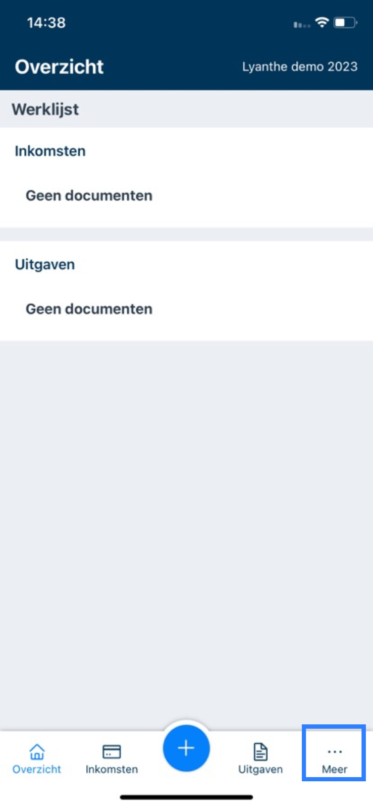 Om informatie van de app op te vragen, navigeert u naar het ‘Meer’ scherm.