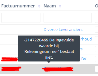 Let op! De foutmelding duidt niet op het feit dat er een verkeerde bankrekening nummer genoteerd is bij klant of leverancier, maar dit heeft te maken met de gekozen grootboekrekening in AFAS.