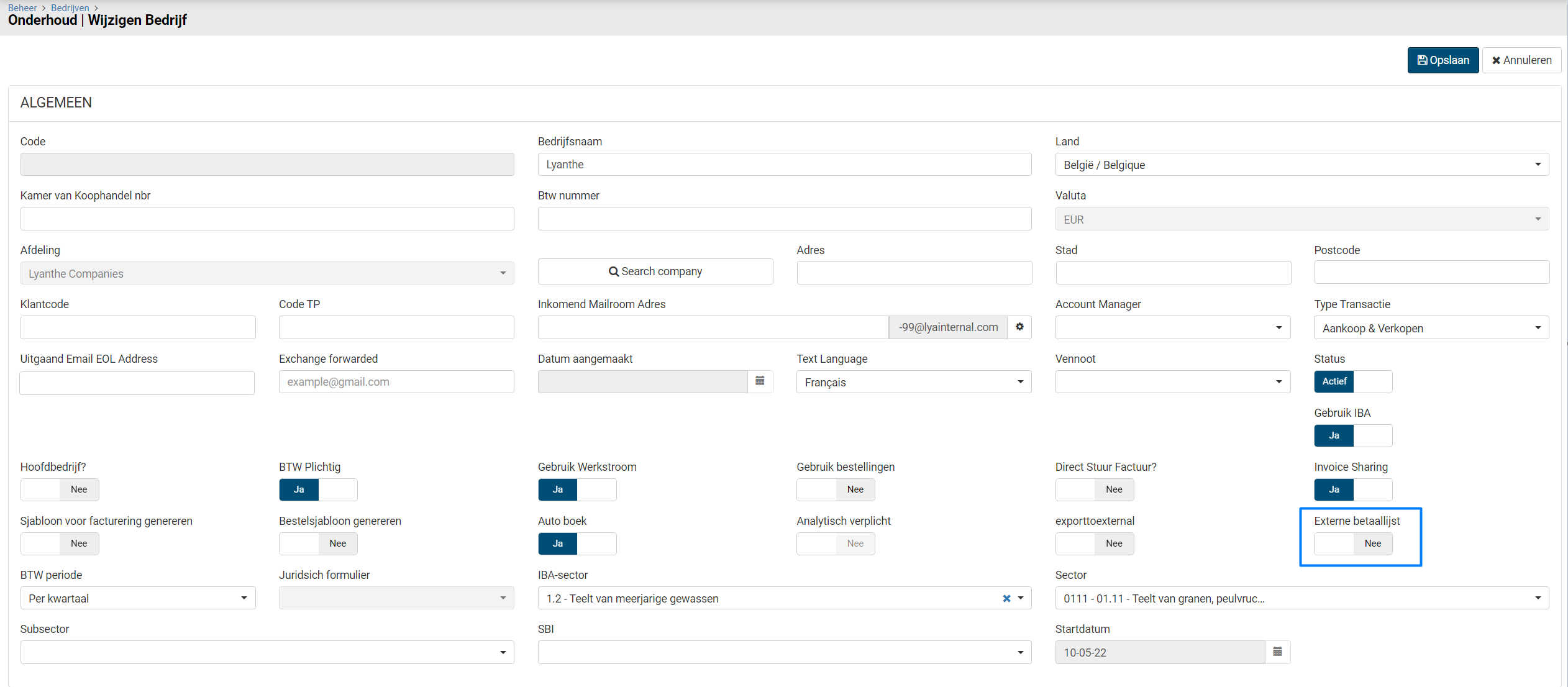 Als u wilt werken met een autorisatie voor de betaallijst in uw boekhoudpakket dient u de externe betaallijst op administratie niveau aan te zetten. Let op: Externe Betaallijst kan alleen aangezet worden als workflow aan staat op de administratie i.c.m. softwaretypes: MFO Exact Online of Twinfield.