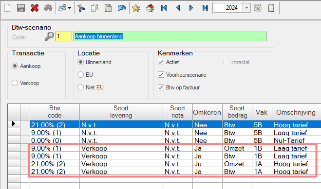 Boekhoud Gemak (Multivers) ondersteunt dat Aankoop BTW Scenario's beschikbaar zijn voor verkoopboekingen en visa versa.