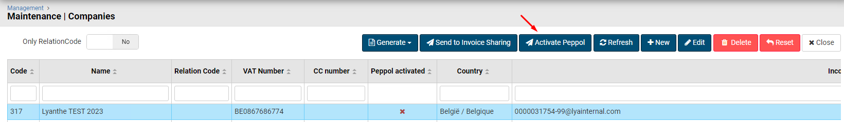 - Zodra de bovenstaande items in orde zijn, kunt u de knop activeer Peppol gebruiken.