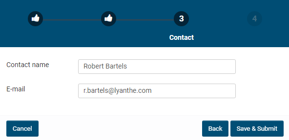 - Bij het kopje "CONTACT" dient het email adres gevuld te zijn. Dit email adres krijgt een bevestigings e-mail.