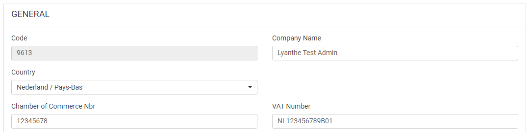 - Bij het kopje "GENERAL" dienen BTW nummer en KVK nummer gevuld te zijn.