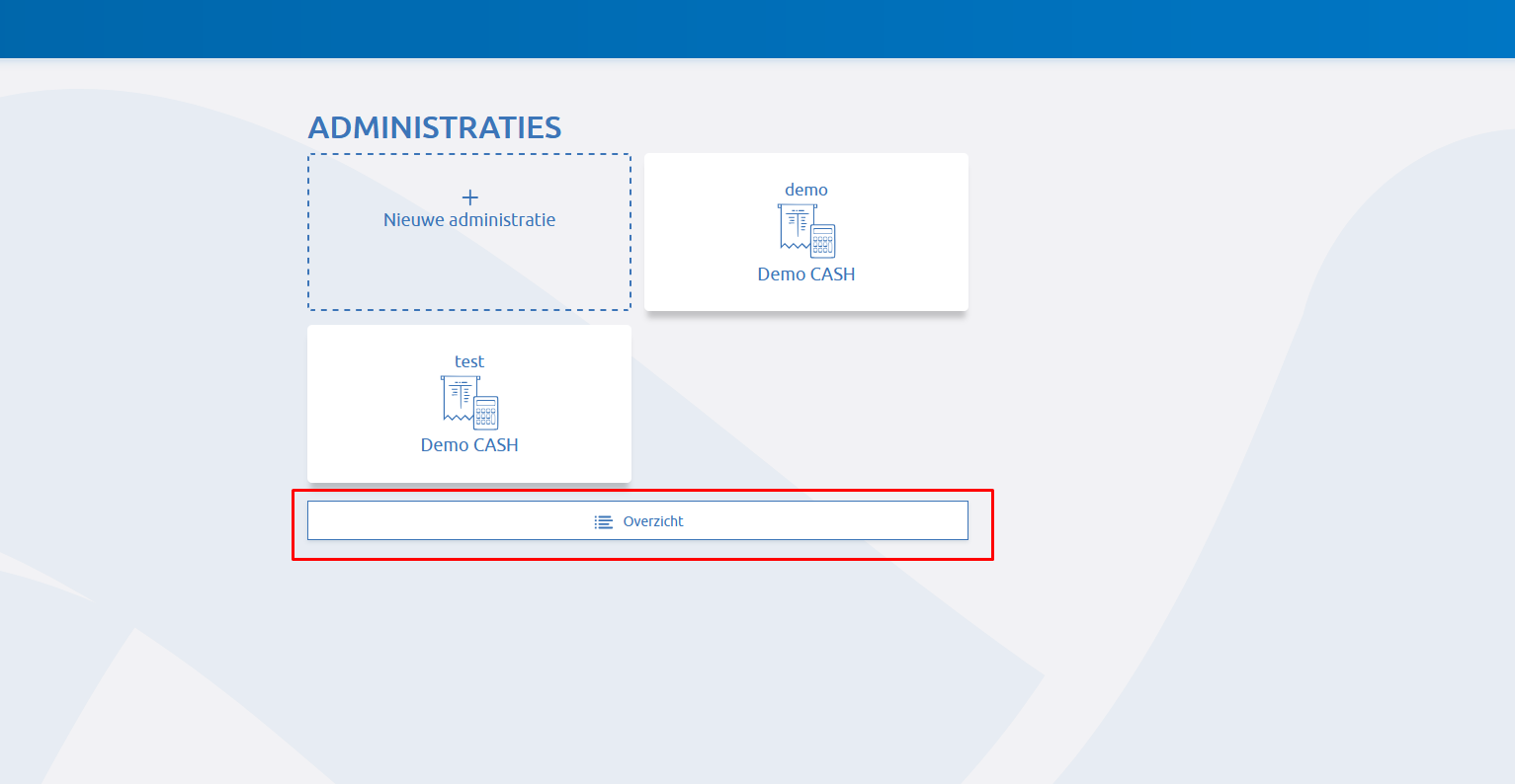 Log in, in uw Cash omgeving. Klik op overzicht