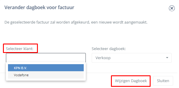 Met bovenstaande uitleg kunt u van één factuur het dagboek wijzigen of meerder facturen in een keer wijzigen.