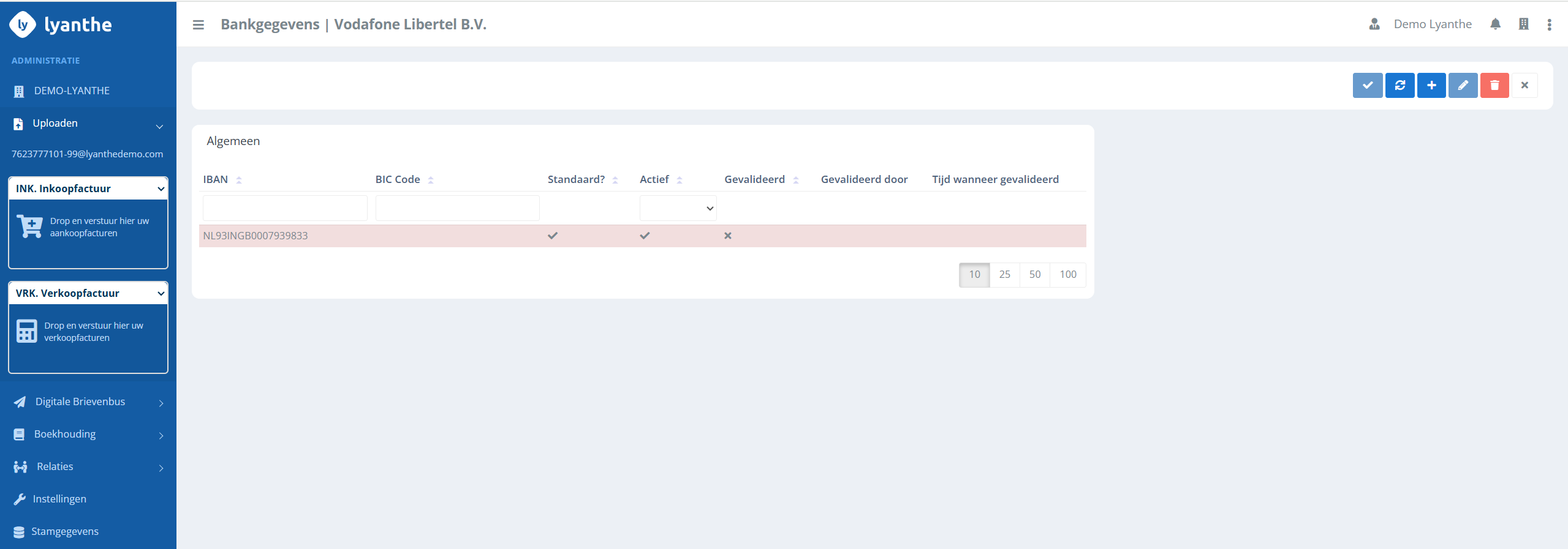 Deze kunnen ook gevalideerd worden via onder Leverancier Details | Bank.