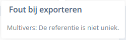 Wanneer u bij verkoopfacturen de exportmelding “De referentie is niet uniek” ontvangt, betekent dit dat binnen de betreffende administratie de instelling ‘Gebruik factuurnummer als boekstuknummer’ in het verkoopdagboek niet is ingeschakeld.