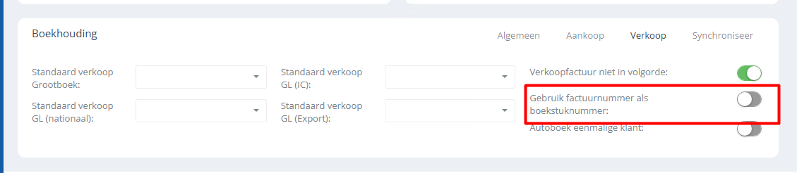 Wij adviseren daarom om de instelling ‘Gebruik factuurnummer als boekstuknummer’ voor verkoopfacturen altijd te activeren. Hiermee wordt onderscheid aangebracht in de nummeropbouw tussen het inkoopboek en het verkoopboek, waardoor conflicten worden voorkomen.
